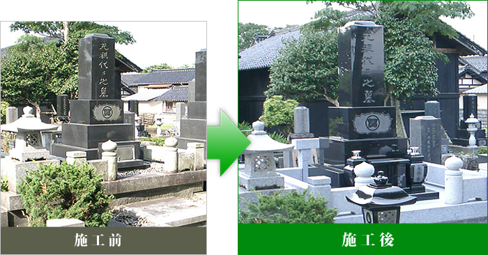 こまめにお手入れをしていても、長年雨風にさらせれている墓石に汚れがつくのはどうしても避けられません。 プロの技で墓石のシミ、垢、汚れを落とすと、見違えるような美しさが蘇ります。